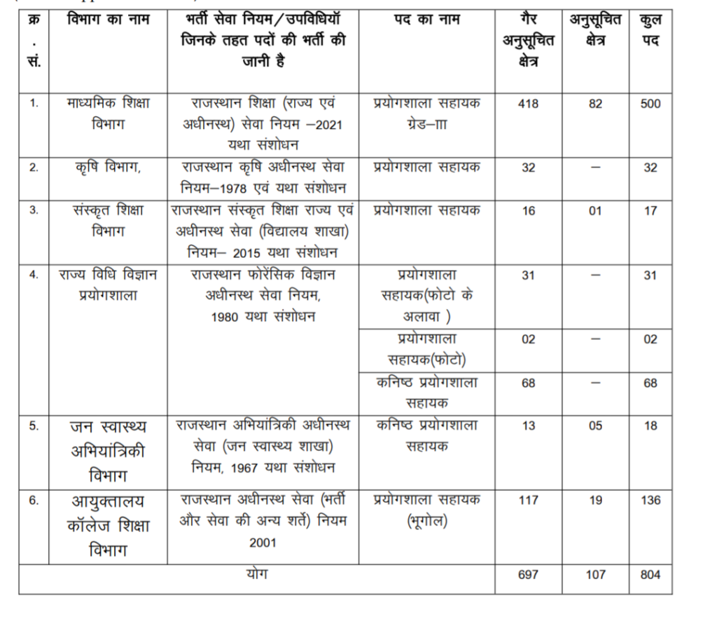 Rajasthan Lab Assistant Vacancy 2026 : Notification released for 804 posts